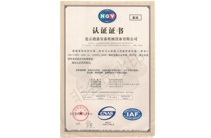 取得了ISO9001質量體系認證證書