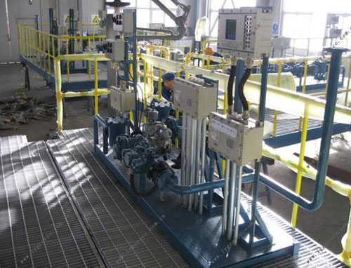 油品定量裝車橇裝組是指將每一個裝車鶴位內的儀表和設備集成在一個專用的框架結構內,儀表和設備包括裝車鶴管、流量計、防溢油靜電報警控制器、壓力變送器、裝車流量控制閥、緊急切斷閥,裝車泵、批量控制器等, 只預留工藝連接口和控制電源和通訊接口,這個整體集成部分稱為裝車橇。與傳統(tǒng)的裝車控制系統(tǒng)就地組裝比較,裝車橇可以節(jié)省現(xiàn)場設計和現(xiàn)場施工量,縮短項目工期,提高裝車控制系統(tǒng)的質量。